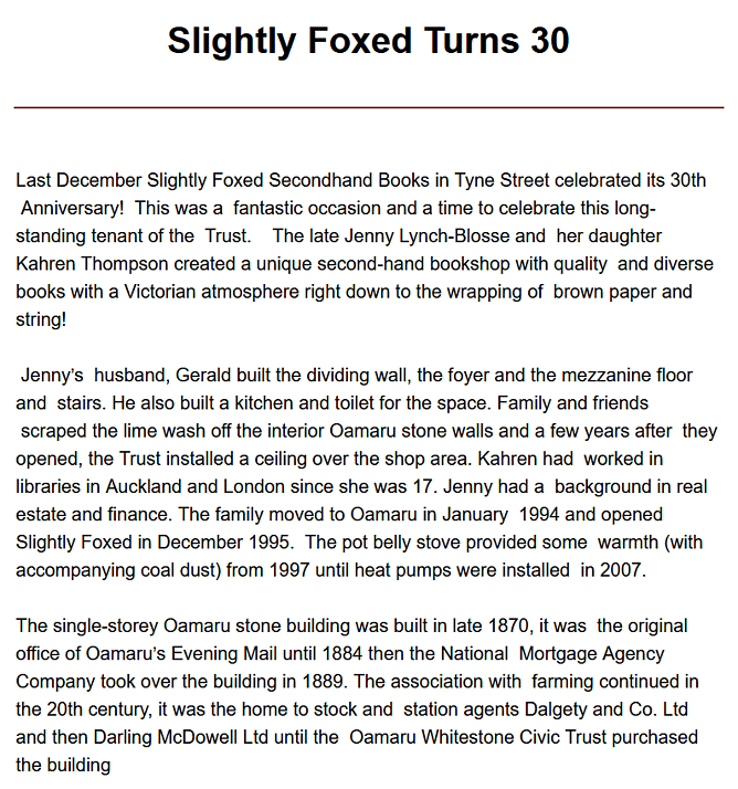 OUR VISION Establishing Oamaru as a heritage destination by bringing alive and conserving New Zealand’s best complete collection of Victorian buildings.