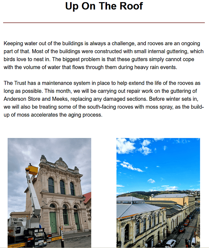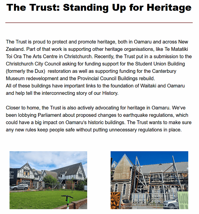 OUR MISSION Conserving Oamaru’s Heritage Precinct and developing the buildings and streets into a destination locals embrace, visitors want to experience and which drives economic growth and community pride.