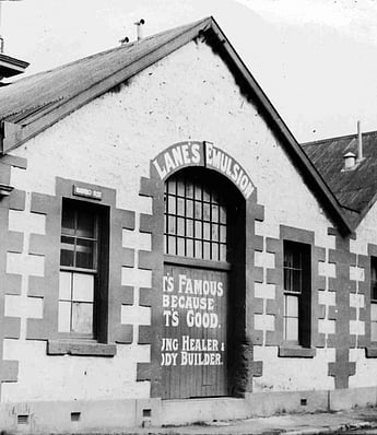 Lanes emulsion, which had a strong fishy smell owing to its high cod liver oil content, was invented by Edward Lane, a chemist from Oamaru, in 1898. In 1907/08 the company opened a new factory in the town's Harbour Street. The original recipe contained cod liver oil, beechwood creosote, mineral lime, soda, brandy, vitamins, fresh egg yolk and some secret ingredients.